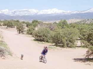Ian was able to spend more time biking and set off on a 30 mile ride ... Sniff decided to follow ... the ride started South of Moab and was very flat to start with but became more rocky later ...